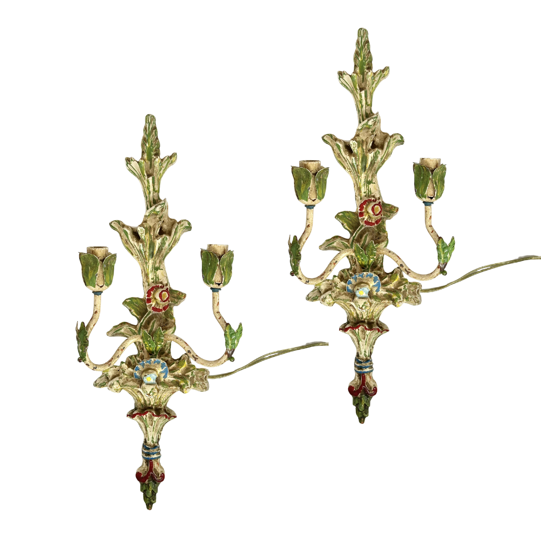 Antique Floral Sconces, Set of 2