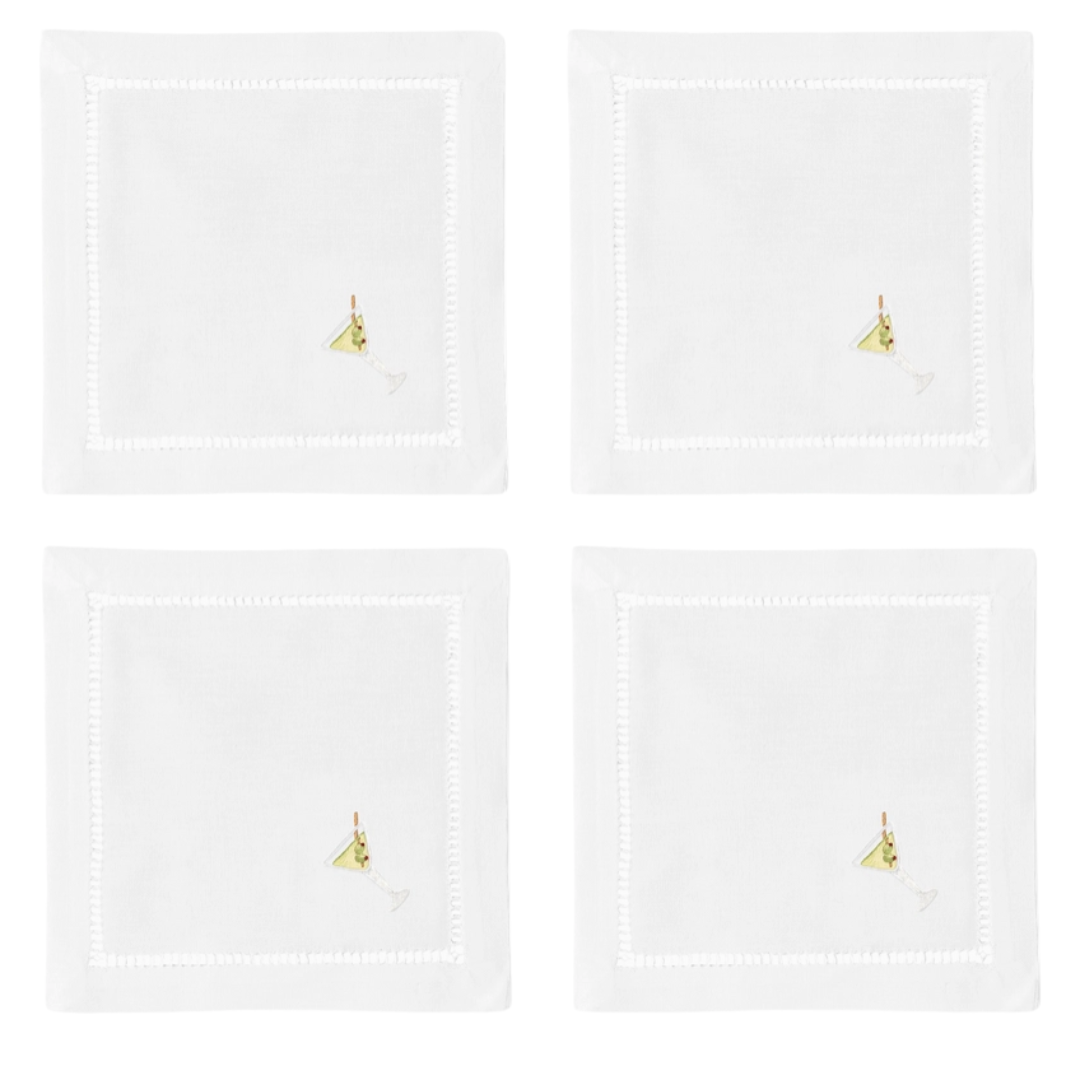 Sold in ribboned packages of four square cocktail napkins, these make a perfect housewarming, host or hostess gift. Designed in Portland, Oregon and meticulously hand-embroidered and hand-hemstitched on cotton by the world’s finest artisans, our motifs have strong, year-round sell-throughs in gift shops, as well as home and linen specialty stores. Our hand-crafted products are meant to be used daily and enjoyed! With proper care and laundering they will become heirlooms. Machine wash on gentle cycle with cool water, or hand wash. Avoid bleach and brighteners. Tumble dry on low heat. For traditional crisp finish, remove from dryer after wrinkles are released and while still damp; line dry. Iron on reverse using cotton setting.