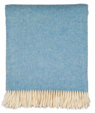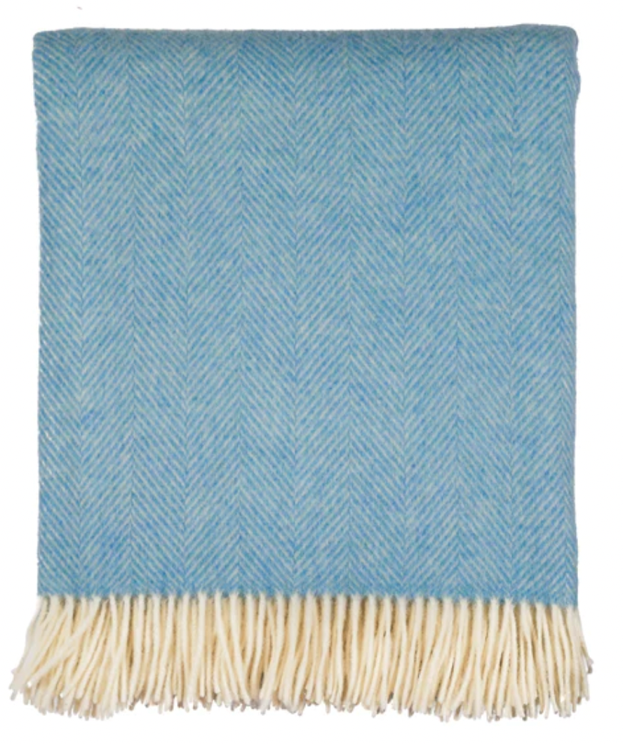 Merino Wool Herringbone Throw, Sky Blue