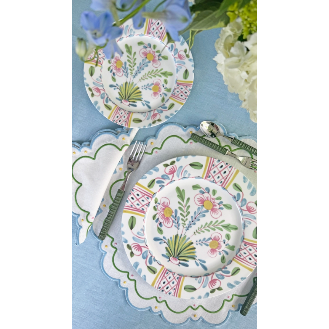 These embroidered linen napkin with scalloped edges bring timeless elegance and refined texture to table settings, making them perfect for entertaining, everyday dining, and layered tablescape styling. Our specially designed 100% linen napkin feature delicate embroidery and elegant scalloped edges, offering a classic yet versatile tabletop essential for retailers.