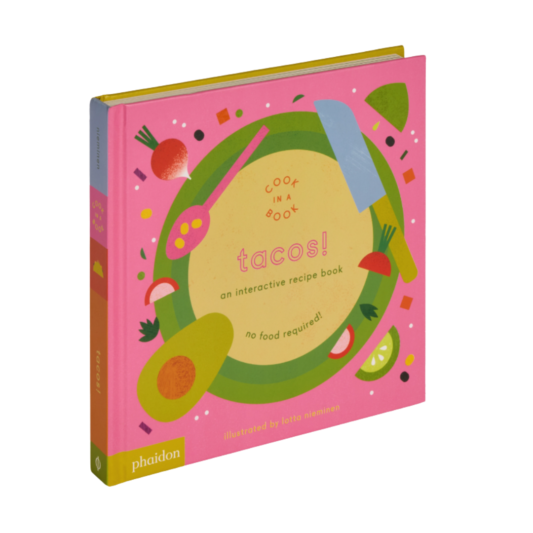 For kids who cook in a play kitchen or a real kitchen, this interactive recipe book invites readers to chop the vegetables, mash the avocado, warm the tortillas, and more - all inside the book! Step one: Cut the chicken into cubes and toss it in a bowl with the spices. Step two: Warm oil on a skillet on the stove, then add the chicken. Step three: While the chicken cooks, chop the scallions, slice the radishes, shred the cabbage, mince the cilantro. Simple yet accurate recipe text takes readers through the steps of cooking tacos, while the interactive novelty features such as pull tabs, sliders, wheels, and pop-out pieces invite them to participate in the process. Perfect for kids who love to help in the kitchen, or any child who prefers to "do it myself." This is the third title in the COOK IN A BOOK series.