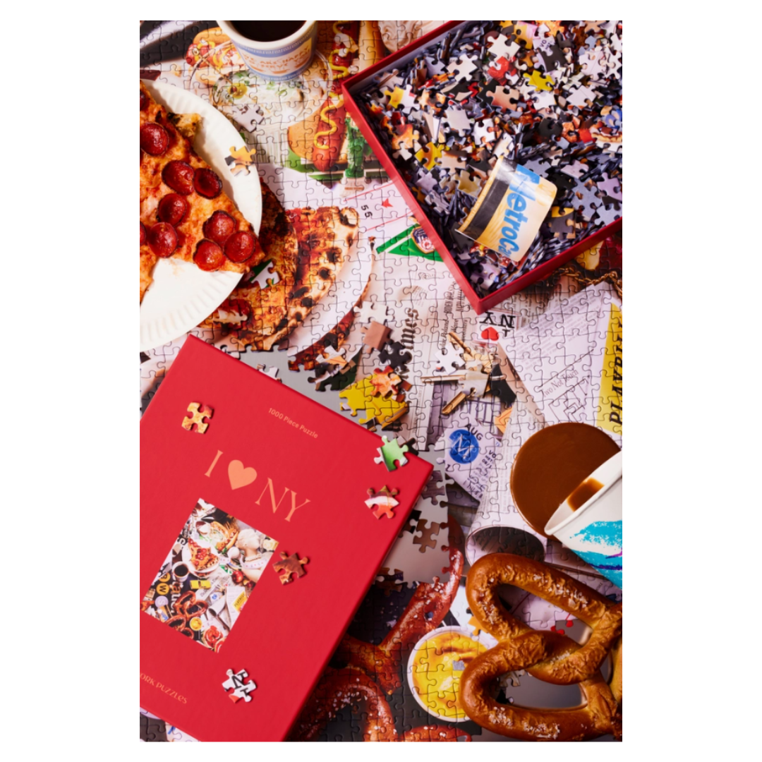 Pizza, pretzels, playbills and deli coffee — this is New York, the big apple, the city that never sleeps, the Empire State, captured in one 1000 piece puzzle. Don’t think glitz and grit belong in the same jigsaw? Fuhgeddaboudit.