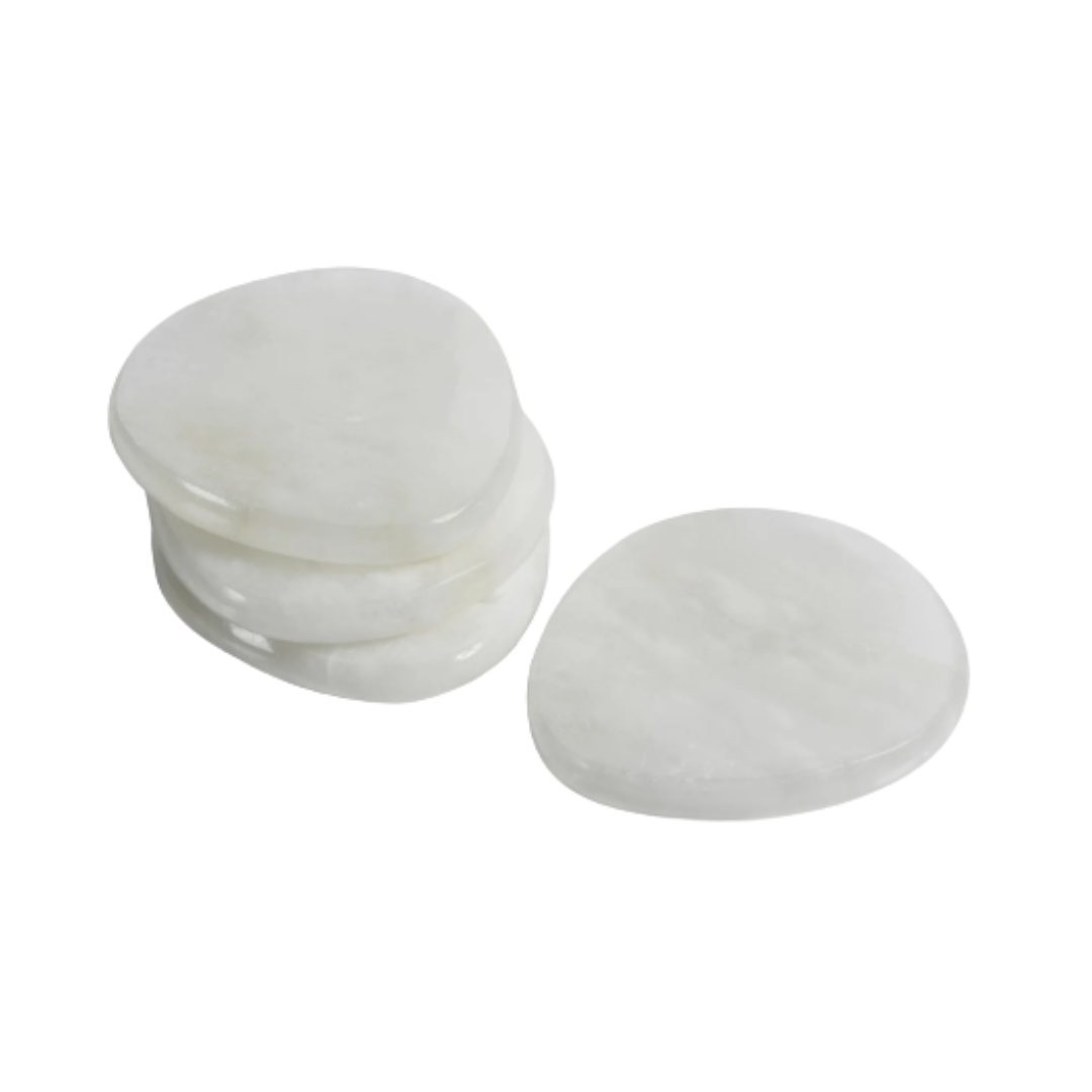 The La Salama Alabaster Coasters are crafted from polished alabaster, featuring natural veining that makes each piece one of a kind. Subtle and sophisticated, this set elevates your tabletop while offering both beauty and functionality.