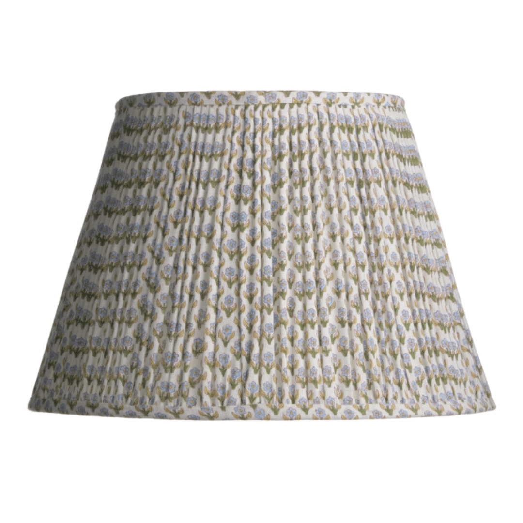 This Aditi Floral shade is hand-blocked by artisans and printed on a beautiful linen ground fabric, and is sure to add a pop of color and flair to your space! These classic empire-shaped softback shades are pleated and gathered by hand, adding a refined and elevated touch to their timeless design.