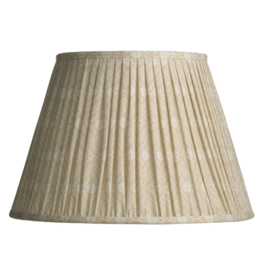 This Tulipiere design is printed in a beautiful Ecru on off-white cotton/linen blend. These classic empire-shaped softback shades are pleated and gathered by hand, adding a refined and elevated touch to their timeless design.