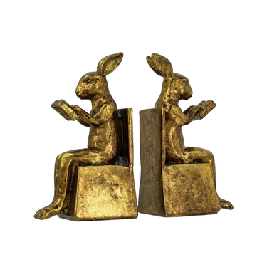 Masterfully combining the sophistication of antique art with a touch of whimsy, each bookend showcases an intricately detailed bunny rabbit, engrossed in its own story. Finished in understated gold, they are sure to elevate any space while stylishly supporting novels, cookbooks, comics, and more.