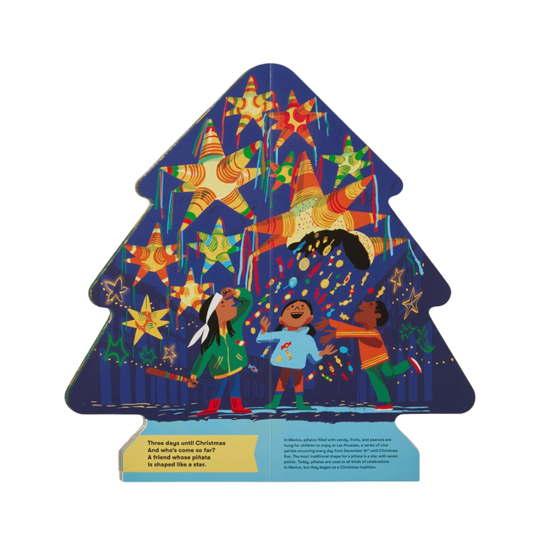 A global celebration of Christmas, this unique tree-shaped carousel-format novelty board book can be opened and folded back to create a free-standing Christmas tree using its integrated magnetic closure. A sturdy and gorgeous gift, featuring frame-worthy art.