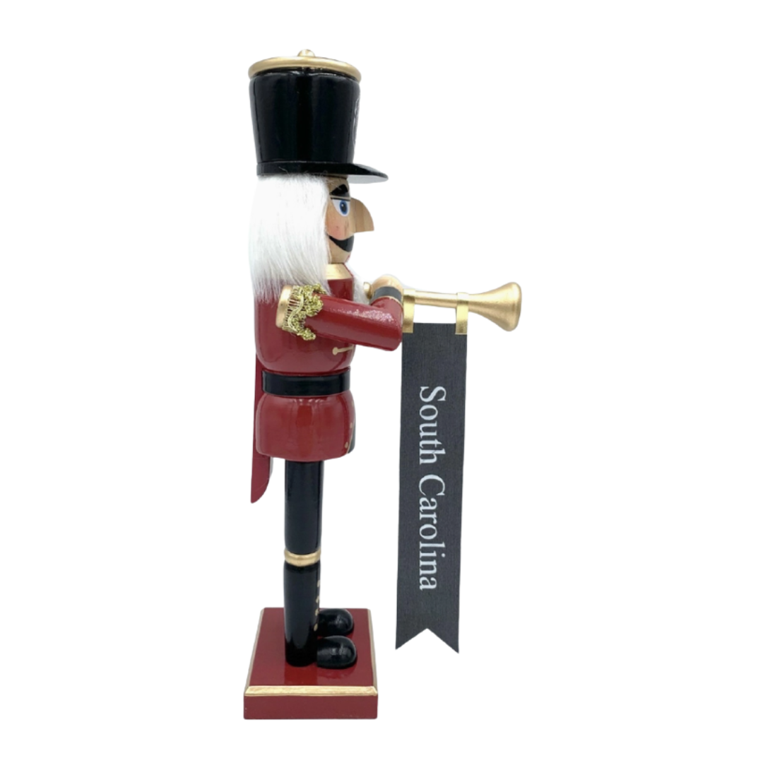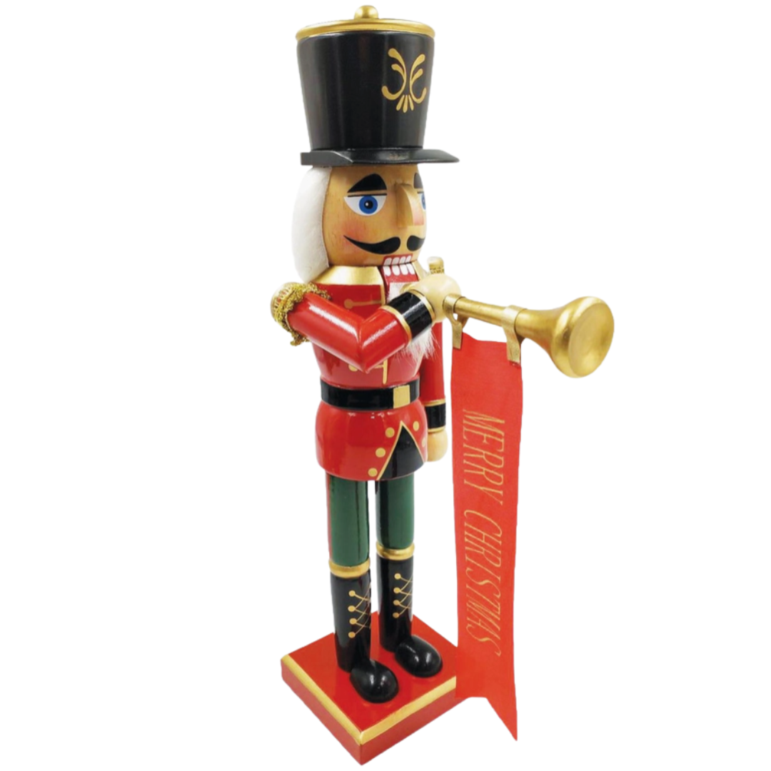 These handsome Christmas nutcrackers have put on their finest uniforms and eagerly wait to blow their golden horns announcing Santa’s arrival! Beautifully handcrafted from wood and hand painted, these elegant 14" Bugler Nutcrackers are sure to provide many years of pleasure.