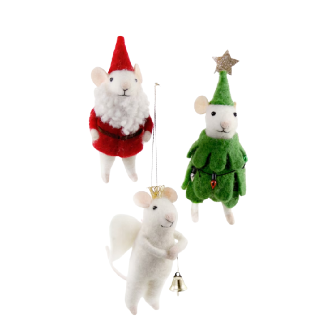 Complete your Christmas tree with the Merry Christmas Mouse Ornament. Offering a variety of small, mouse themed decorations, the 100% wool ornaments complete your Christmas display with creativity and fun!