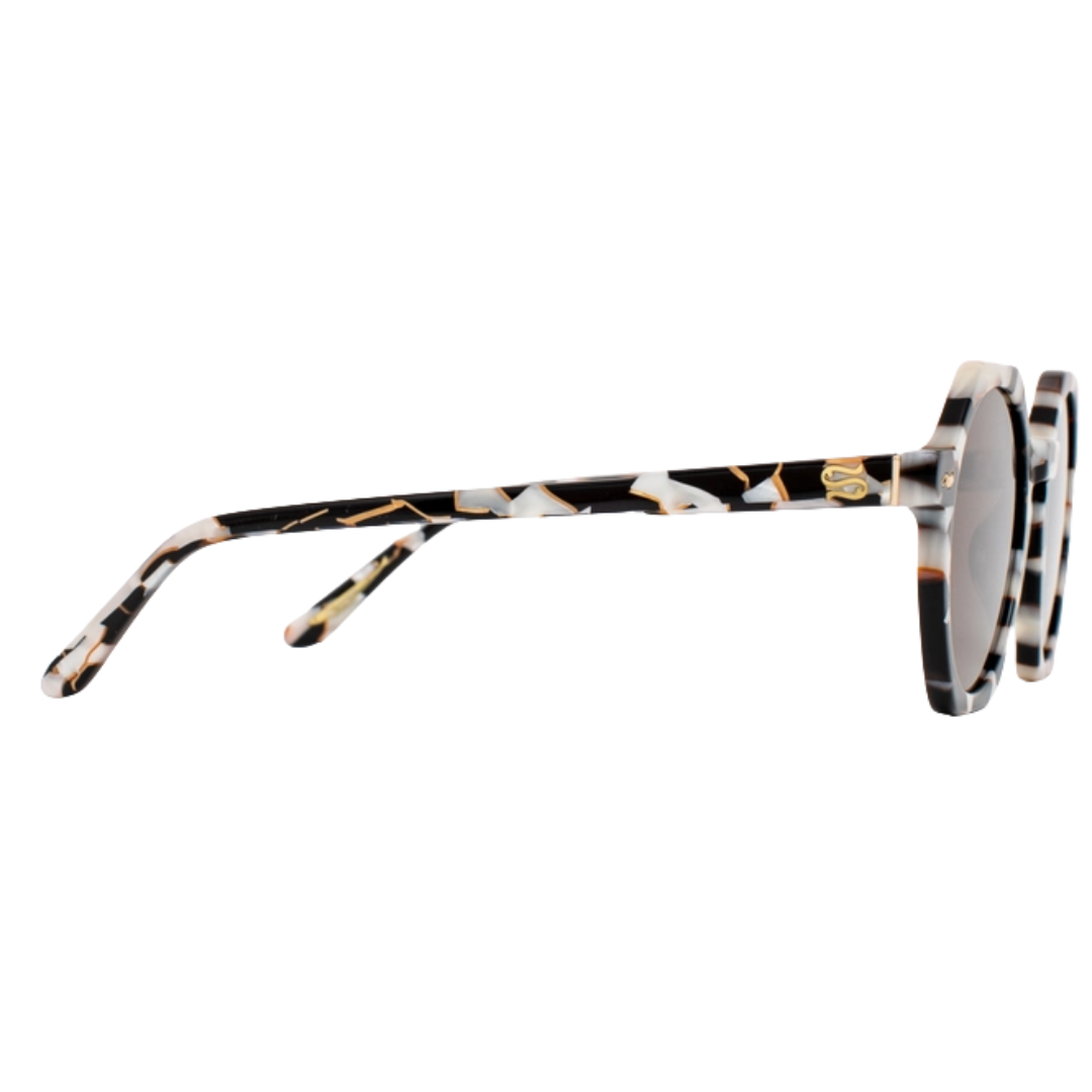 Everything you loved about our best-selling Georgie frame, scaled up with 20% more size and coverage. The Millie takes its cues from the icons of the ‘70s — oversized, soft hexagon curves, custom gold rivets, and flat lenses for a perfectly polished profile. Designed to turn heads, but light enough to forget you're wearing them. Cosmic Cowboy takes cues from rodeo glam and midnight skies—monochrome marbling meets flickers of gold for a look that feels both vintage western and completely otherworldly. Whether you're two-stepping into a wedding or happy hour-ing in worn-in jeans, this frame brings that shoot-for-the-moon confidence. SARDINE is produced in small batch, and ethically sourced. All frames have 100% UV protection, and are made with unique Italian acetates. They each come with a branded case.