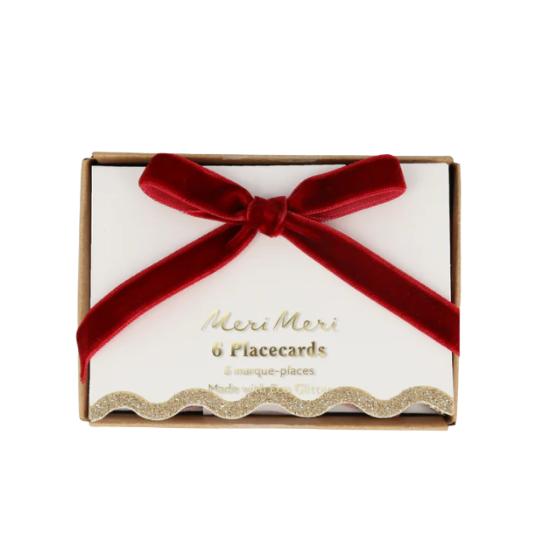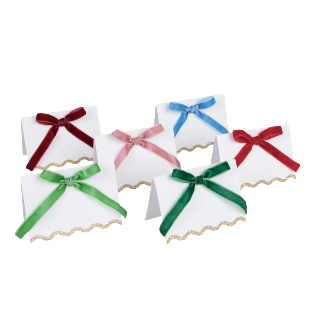 Bows are back in a big way! These on-trend embellishments will add instant elegance to any event. Our place cards, with luxurious velvet bows and glitter scalloped edges, are a must-have for any stylish party.